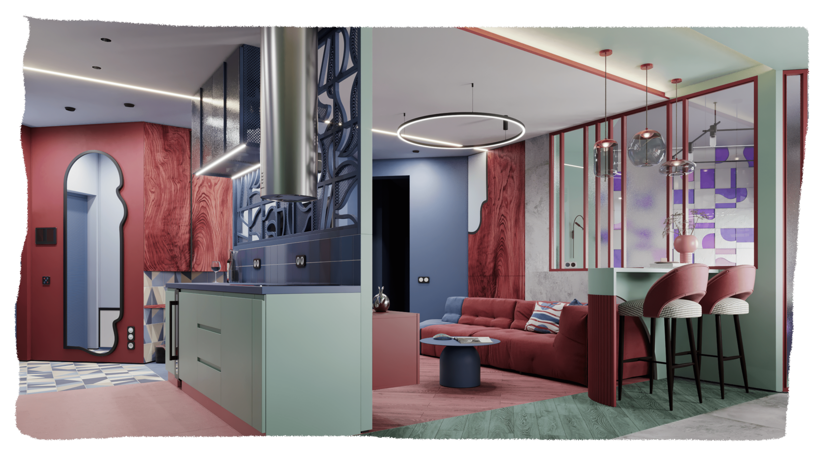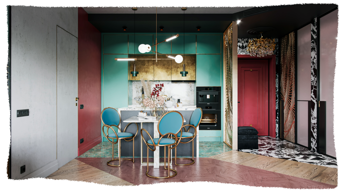 Сочно. Функционально. Эффектно. Именно такие установки определили характер дизайна этой квартиры, построенного на цветовых контрастах с большим количеством дизайнерских приемов и цветным штучным паркетом, который стал основой проекта.