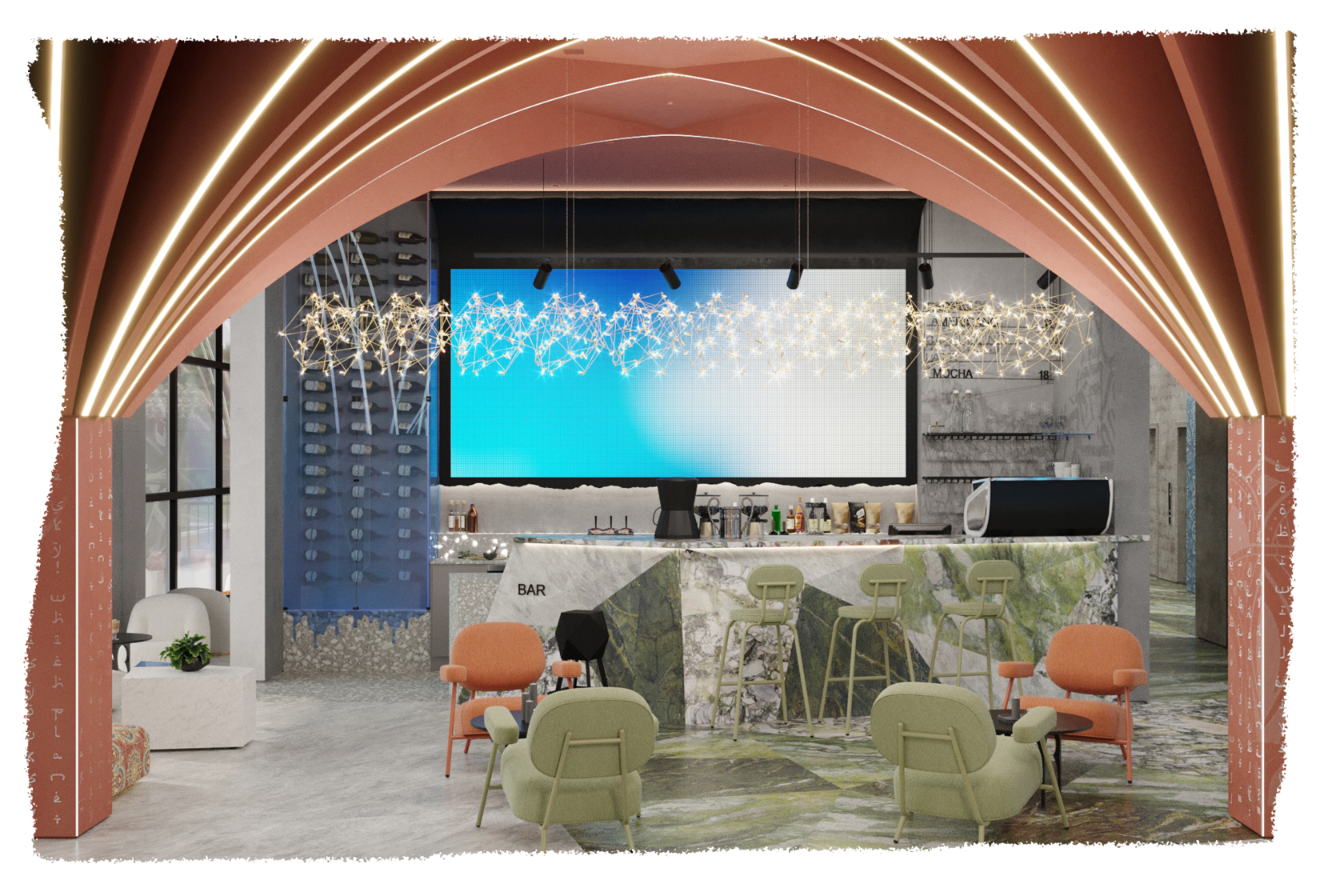 Проект четырёхзвездочного отеля в Анапе мы получили не сразу, так как на первой встрече с Заказчиком выяснилось, что у нас совершенно разные взгляды на то, как должен выглядеть современный отель.